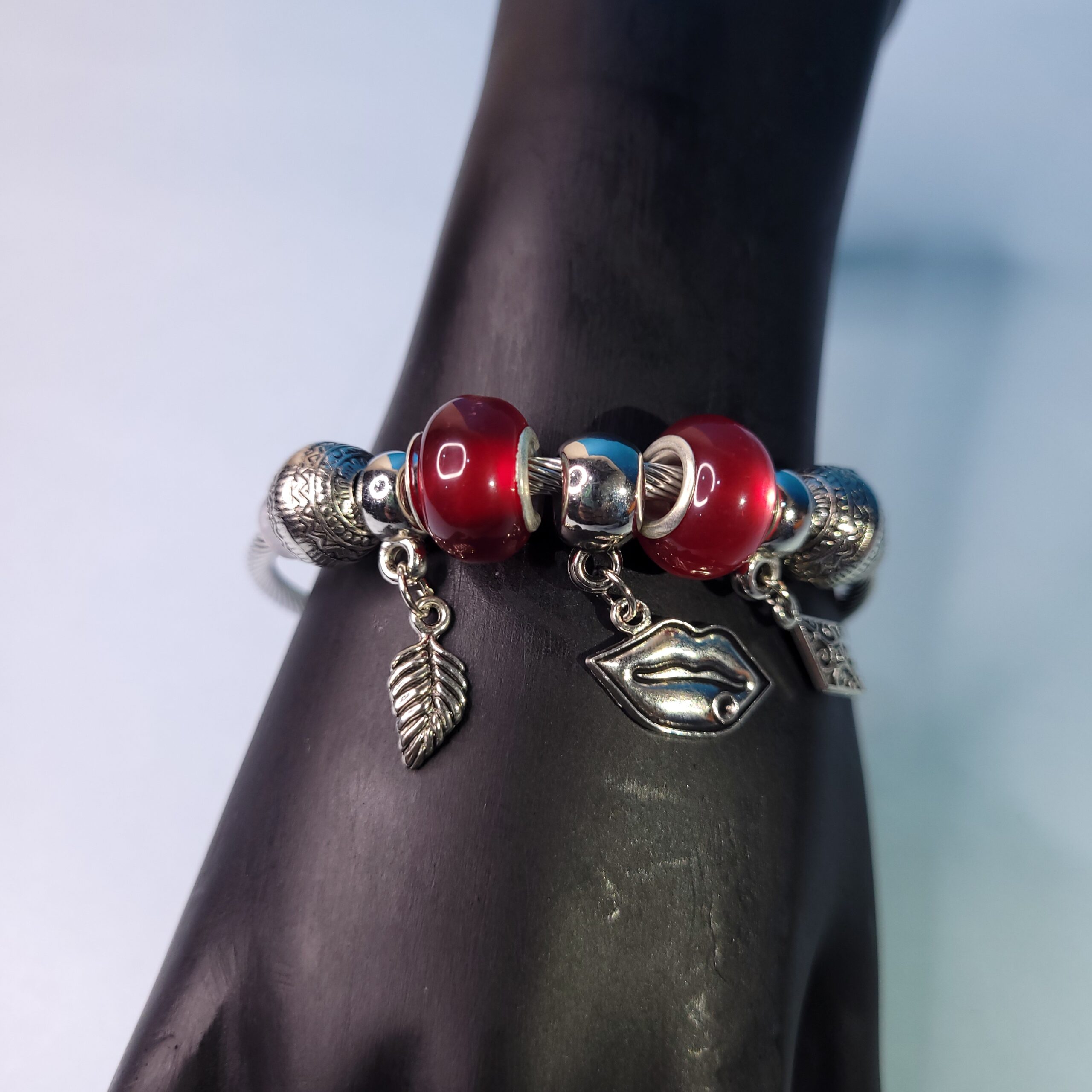 Red Beads & Emoji Adjustable Bracelet – Trendy Charm Jewelry for Women & Girls